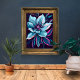Plongez dans la beauté éthérée de cette oeuvre florale captivante. Les pétales délicats, peints dans des tons vifs de bleu et de rose, dansent sur fond de minuit. Cette pièce fascinante est un complément parfait à toute maison moderne, apportant une touche de sérénité et d'élégance.