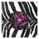 Image de fleur zébrée rose sur arrière - plan en carrelage zébrée, garnie d'un bijou au milieu de la fleur