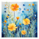 Impression Photo Fleurs dorées sur fond bleu vif