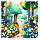 Une représentation fantaisiste d'une forêt baignée de lumière douce, avec des fleurs colorées et des champignons qui parsèment le sol de la forêt. Ce design apporte une touche de magie à toute pièce.