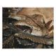 Un Viper Gaboon repose sa grande tête à côté de son corps en attendant son prochain repas pour se faufiler dans la zone de grève. Le patchwork de bronze, de brun et de noir le rend presque invisible sur la litière foliaire du sol forestier.
