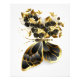Or flower butterfly with black jewelry orchid, decorated with gold leaves on white background.