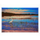 Great Egret se trouve dans le Parc National des Everglades de Floride, avec des bandes de couleurs du ciel reflétant dans les zones humides en dessous.