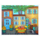 Scène de peinture colorée et romantique d'un beau village provençal et d'une table pour deux dans la cour avec une belle bouteille de Rosé de Lisa Lorenz. Disponible maintenant en tant qu'impression d'art.