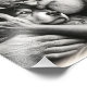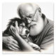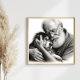 Illustration en noir et blanc très détaillée montrant un vieil homme aux lunettes tenant tendrement son chiot de Border Collie. Le travail de crayon hyperréaliste capture chaque ride, chuchotement et brin de fourrure, en mettant l'accent sur la relation protectrice et aimante entre le monsieur vieillissant et son jeune ami canin. Cette pièce qui fait chaud au coeur célèbre le lien intemporel entre les humains et les membres de leur famille à quatre pattes.