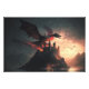 Dans le royaume de l'imaginaire et des créatures mythiques, un dragon féroce, inspiré par l'art populaire complexe, lance une assaut fougueuse sur un château majestueux. Avec des écailles en flammes et des ailes larges, la puissance primale du dragon et ses prouesses mythiques sont dépeintes de manière frappante dans cette scène dramatique. Evoquant un sens des légendes anciennes, les détails complexes du dragon et du château mêlent les éléments du folklore à une touche d'énergie brute et indomptée. Au milieu de l'agitation chaotique des flammes et des motifs folkloriques complexes, cette représentation capture la lutte intemporelle entre les forces primales et la civilisation humaine, mettant en évidence la fascination persistante pour l'interaction entre mythe et réalité.