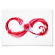 Infinity symbole of continuous stream of red pouring into glass glass glass on white background.