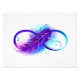 Infinity symbole with a beautiful feather painted in purple and blue bright colors on white background