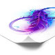 Infinity symbole with a beautiful feather painted in purple and blue bright colors on white background