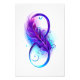 Infinity symbole with a beautiful feather painted in purple and blue bright colors on white background