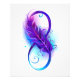 Infinity symbole with a beautiful feather painted in purple and blue bright colors on white background