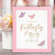 Ce joli panneau de jeu baby shower "devinez combien" présente un design simple de papillons flottants autour d'une typographie stylisée. Les couleurs du rose pastel, du violet et du faux papier doré donnent un aspect élégant.