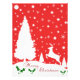 Joyeux Snowflakes D'Hiver Rouge Et Blanc Joyeux Artwork De Noël Représentant Un Arrière - plan Rouge Aux Étoiles Blanches Avec Des Arbres De Noël Et Un Cerf En Voie Sur Un Terrain Couvert De Neige. Accenté Avec Holly Et Les Mots Joyeux Noël.