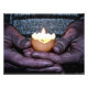 Des mains âgées caressant un oeuf de bougie, le protégeant.