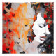 Une belle femme et papillons grungy déversé collage de peinture dans les tons rouge, orange, noir et blanc généré par l'IA