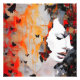 Une belle femme et papillons grungy déversé collage de peinture dans les tons rouge, orange, noir et blanc généré par l'IA