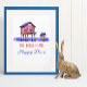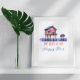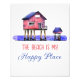 Une affiche avec une maison de plage sur pilotis à l'aquarelle, avec la citation, "The Beach is my Happy Place." Ai art. génomique