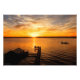 Deux pêcheurs aiment la pêche tôt le matin, ainsi qu'un spectaculaire lever de soleil doré au-dessus du lac Seneca, à New York, avec des nuages spectaculaires, un boathouse et un quai. Photo ©Liz Van Steenburgh