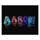Ces dessins sont faits à partir de photographies de moulage à la main, câblée à la main, des lettres de changement de couleur aléatoires. Le nom Aaron se reflète dans l'eau calme avec des hexagones flottants en feuille. Les lettres ont l'air d'être taillées dans de la glace craquelée, avec les aurores boréales qui les traversent. Si vous ne trouvez pas le nom que vous voulez, veuillez entrer en contact, et je le mettrai sur ma liste.