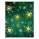 Arrière - plan de Noël vert avec des flocons de neige en or et bijoux verts. Des flocons dorés. Noël.