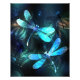 Deux libellules transparentes, lumineuses, turquoise, artistiquement dessinées sur l'arrière - plan de nuit avec des algues luminescentes et des lucioles. libellule éclatante.