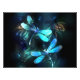 Deux libellules transparentes, lumineuses, turquoise, artistiquement dessinées sur l'arrière - plan de nuit avec des algues luminescentes et des lucioles. libellule éclatante.