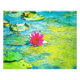 Un nénuphar fuchsia au feuillage vert citron dans une eau turquoise.