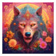 Loup-garou généré par l'IA avec des fleurs.