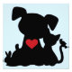 Impression Photo Love Chiot et Kitten Silhouette Bleu