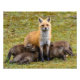 Un renard rouge laisse patiemment ses nombreux kits d'infirmière.