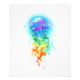 Grande méduse irisée, artistiquement dessinée, brillante, avec de longues tentacules sur le blanc, peinte sur l'arrière - plan multicolore. Méduse arc-en-ciel.