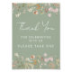 Ajoutez une touche sincère à votre célébration avec ce poster de remerciement sur le thème des fleurs sauvages. Avec des florales aquarelles élégantes et le message « Merci d'avoir célébré avec nous », c'est le panneau idéal pour les mariages, les baby showers, les fêtes de mariage ou les garden-parties. Une belle façon d'exprimer votre gratitude dans un style doux et inspiré de la nature.