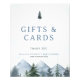Winter, wilderness themed baby shower sign featuring some mountains and pine trees and faintly colored snow flakes. This baby it's cold or wilderness themed baby shower sign is ideal for a winter baby shower.