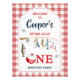 Modern Red Gingham Ofishally One 1st Birthday Welcome Sign