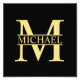 Monogramme personnalisé et cadeaux de nom avec monogramme d'or personnalisé dans le style de police serif classique avec boîte de nom au milieu du monogramme sur arrière - plan noir. Parfait comme décors de maison, cadeaux de ménage, cadeaux de vacances pour la famille, les jeunes mariés et plus. Veuillez noter : Les détails de la feuille sont simulés dans l'illustration. Il n'y aura pas de métal sur ce produit.