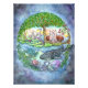 Peinture d'aquarelle unifiée Imaginaires animaux Art avec éléphant, Héron bleu, lama, tortue de mer, requin baleine, pieuvre, arbre de vie par Patricia