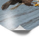 Un aigle chauve et le poisson dans ses talons verrouillent les yeux juste après la capture.
