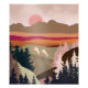 Un paysage abstrait avec des couleurs et des textures uniques montrant un paysage naturel avec un soleil levant et deux oies dans les tons orange, beige, marron et rose.