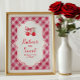 Épousez votre baby shower avec ce panneau sur le thème du cerisier ! Conçu avec des cerises d'aquarelle attachées dans un arc rose et un joyeux arrière - plan en vichy, il dit : "Les bébés sont doux - S'il vous plaît prenez une gâterie." Parfait pour décorer votre dessert, bonbons ou table snack, ce panneau cravate votre thème de baby shower cerise ensemble magnifiquement.