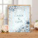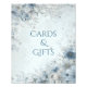Dusty Blue Silver Rose hiver fleurie mariage cartes cadeaux signe avec élégante calligraphie script moderne aquarelle fleurs blanc roses flocon de neige et boho botanique