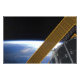 Panneaux solaires sur la Station Spatiale Internationale rétroplacés contre l'horizon terrestre avec STS-126.