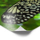 Un papillon de cerf-volant en papier repose sur les feuilles d'un mimosa.