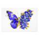 Bijoux, bleu, saphir, papillon aux fleurs pétillantes avec aile décorée de bleu, fleurs précieuses avec feuilles d'or sur arrière - plan blanc.