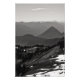 Une photo de paysage noir et blanc de collines ondulantes et de montagnes à perte de vue. Des rangées d'arbres ici et là. Et quelques taches de neige subsistent encore au début de l'été. Copyright ©2023 Kimberly J Tilley. www.zazzle.com/store/developingnature
