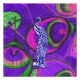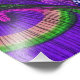 Photo de plumes de paon rose et violet avec un paon métallique violet placé sur le dessus