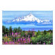 Le brossage imaginatif et les couleurs vives de l'artiste transportent les spectateurs vers une version enchanteresse de la nature de l'Alaska avec la montagne de glace avec la forêt sur le ciel bleu arrière - plan.