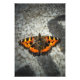 Un petit papillon Tortoiseshell sèche ses ailes au soleil sur la surface fissurée. Photo d'anniversaire de papillon.