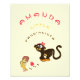 Amusant petit singe avec banane courante sur arrière - plan jaune clair