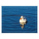 Un mignon petit canard blanc nage et se reflète dans l'eau bleu vif.