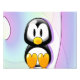 Cet adorable manchot repose sur un arrière - plan funky de bleus, de verts et de violets